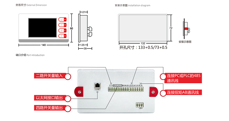 以太網(wǎng)口支持MODBUS-TCP協(xié)議和自定義協(xié)議。